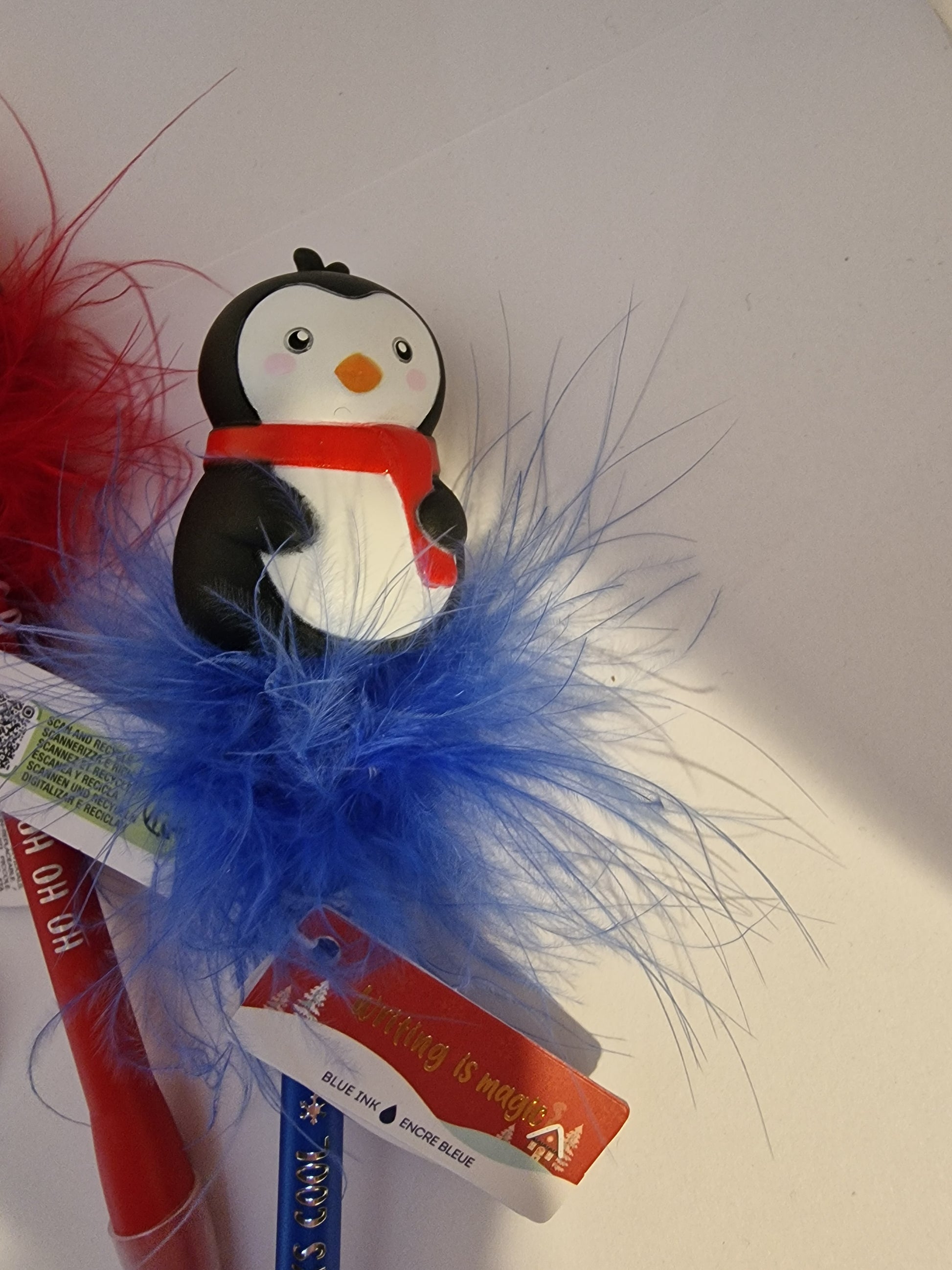 Each pen features a soft, fluffy feather trim and a festive character topper that glows when tapped. Whether you're writing Christmas cards or looking for the perfect high-quality stocking filler, these pens are a holiday must-have.