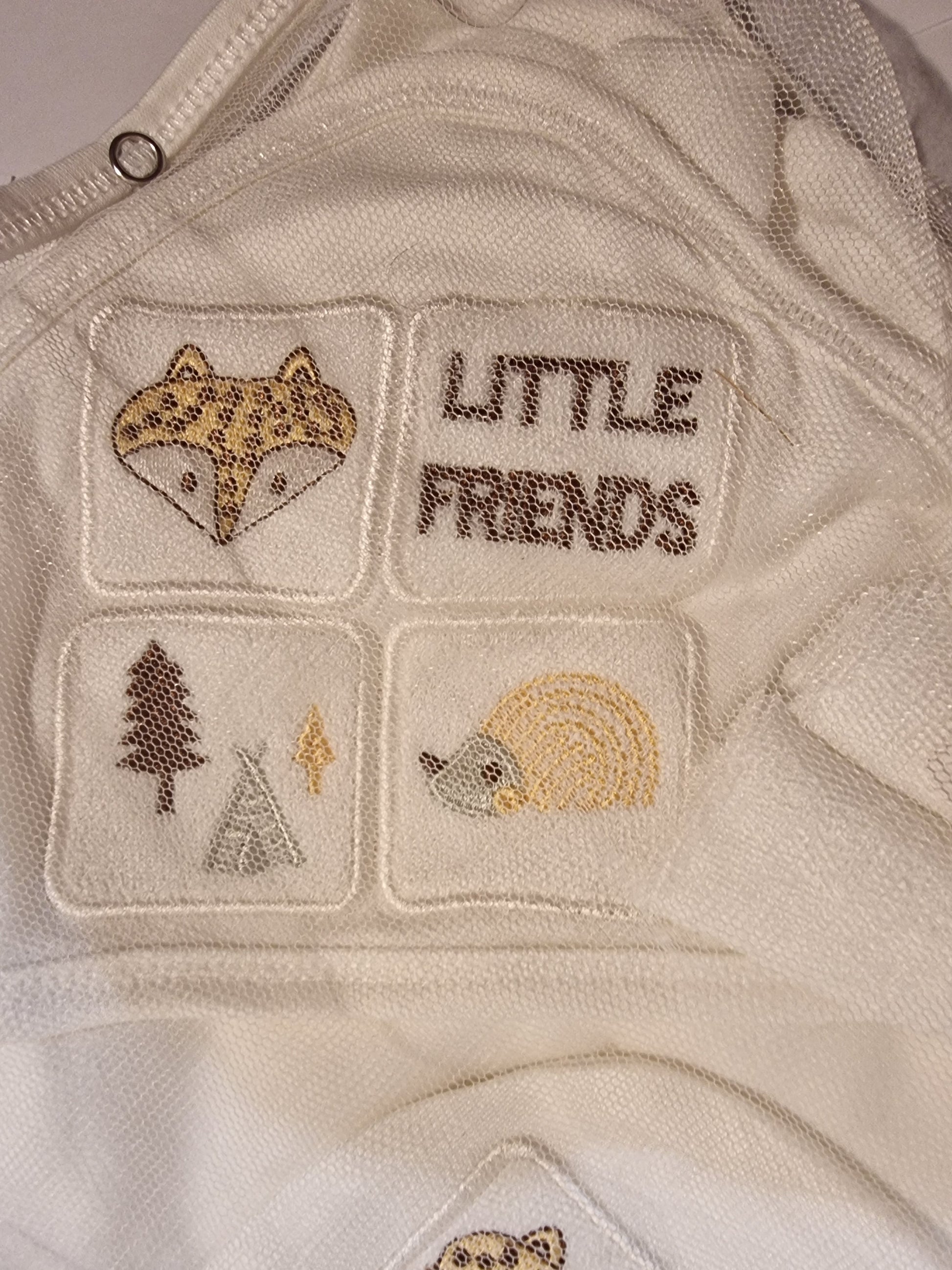 Design: Neutral Woodland "Little Friends" embroidery—ideal for baby showers and "surprise" gender reveals.