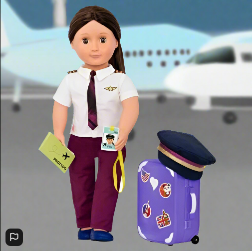 Take flight with the Our Generation Kaihily Professional Pilot Doll, an inspiring figure for any aviation enthusiast or doll collector. Standing at an impressive 46cm, Kaihily boasts a light complexion, deep brown eyes, and straight brown hair that's ready to embark on any adventure. This doll is part of the Our Generation franchise, renowned for creating relatable characters with real-world concerns. Included in the set are doll accessories to enhance the pilot experience, all crafted from durable plastic designed to withstand hours of imaginative play. The product line, My American Girl, ensures high-quality and attention to detail, making it an original licensed reproduction that's sure to become a treasured addition to any collection.