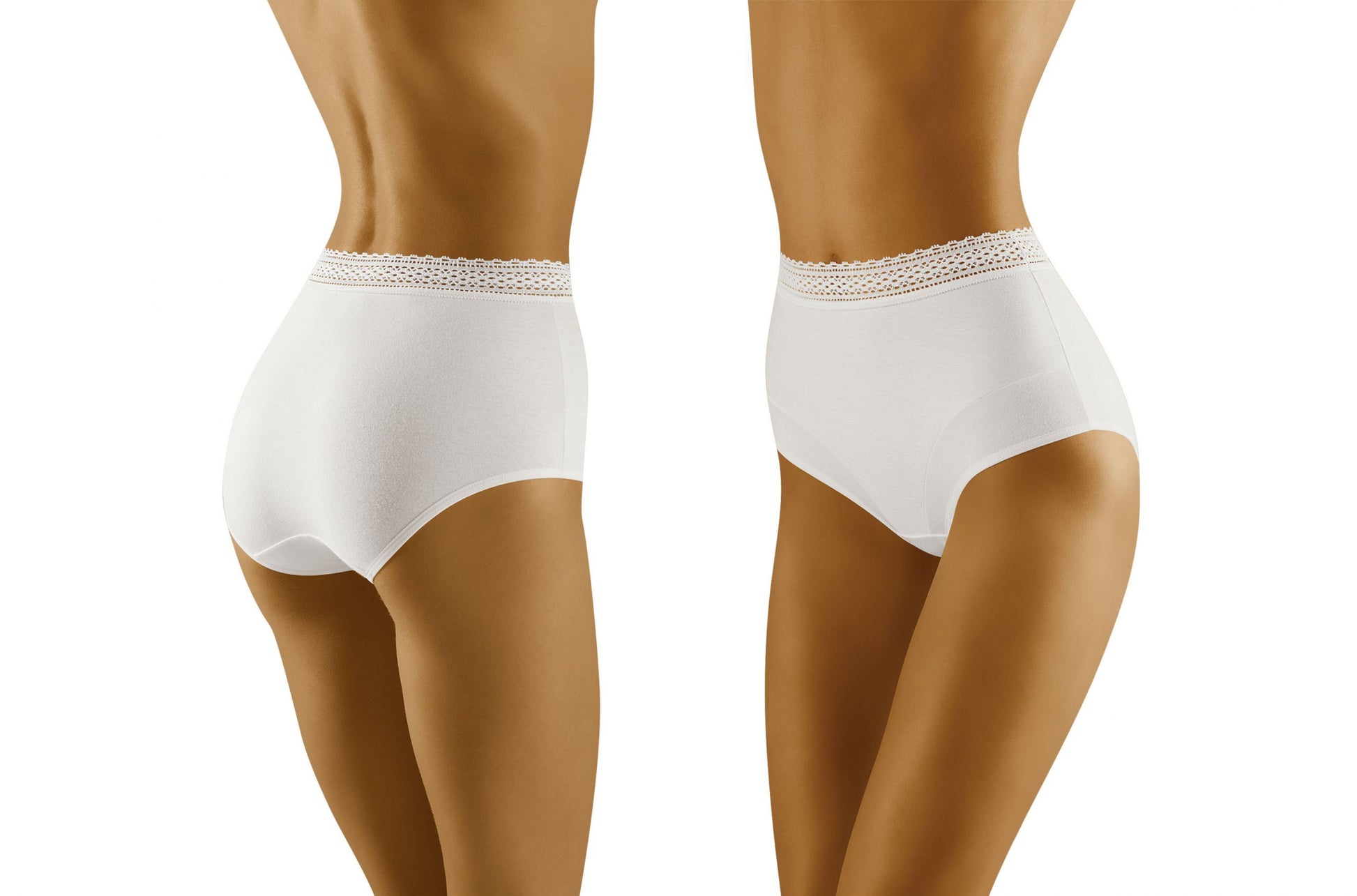 Eco-Go is a lovely pair of briefs made from high quality cotton. The top edge of the brief is decorated with lace trim and elasticated lace. Has delicately sewn seams and on the front this shows a small pattern at the sides. High-waisted and smooth. Features a cotton gusset which is sewn into the brief. Available in white beige and black and can all be ordered separately on the website. This item arrives packaged in a branded Wolbar box presenting an image of the product.