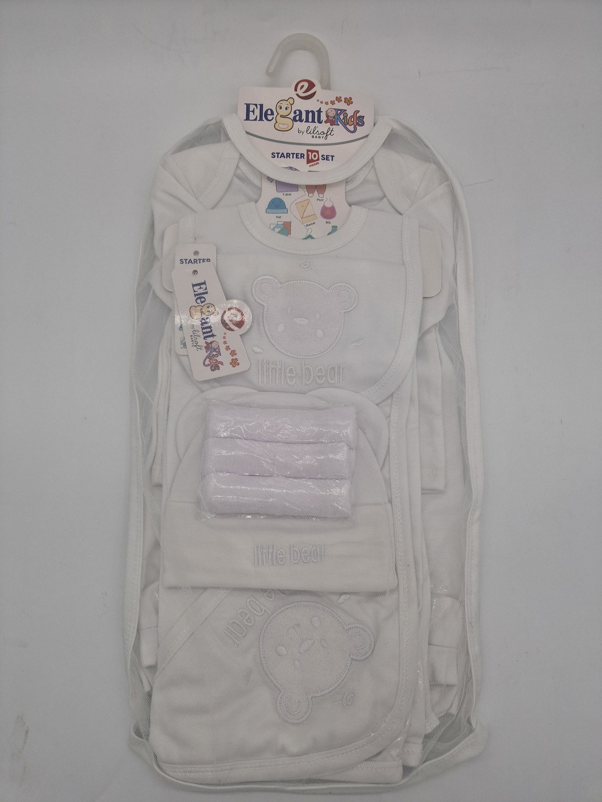 Elegant Kids lilsoft Baby 10 Piece Starter Set Little Bear Design In White
