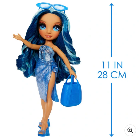 This is the Rainbow High Swim & Style Skyler Fashion Doll from MGA Entertainment's Rainbow High collection. Skyler is a 280mm girl doll with blue straight hair and blue eyes. She comes with an outfit, accessories, and is an original, unopened product. This fashion doll is perfect for all occasions and is suitable for unisex kids. Skyler is part of the Rainbow High franchise and was manufactured in 2023 in China. She has a light complexion and is not an antique or vintage doll. Add this amazing doll to your collection today!